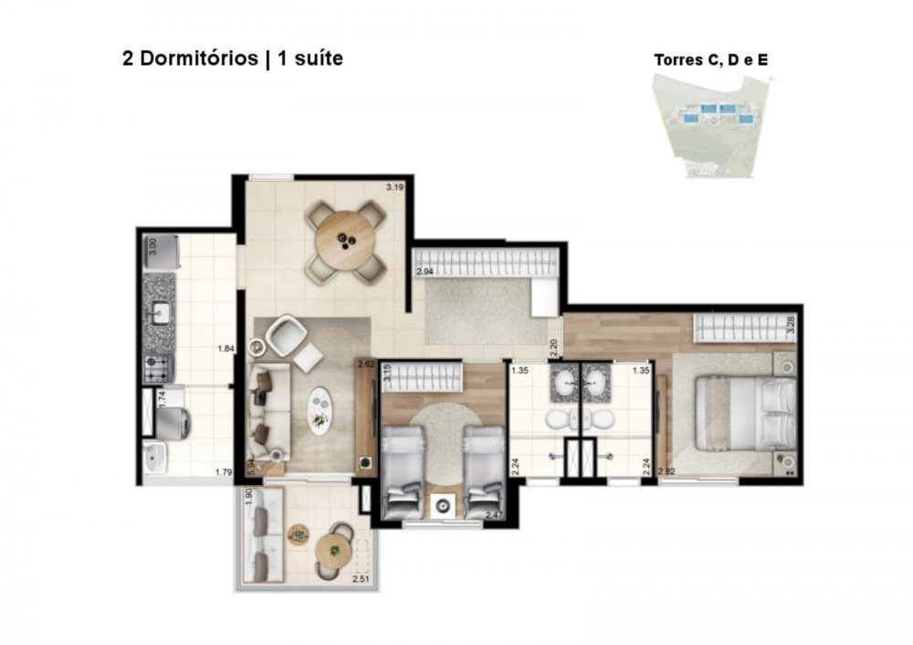 Apartamentos belíssimos de: 02, 03 ou 04 Dorms, todos com varanda e vagas de garagem coberta, feito para atender todos os tipos e tamanhos de famílias!